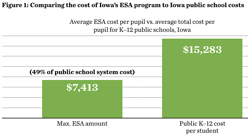In Iowa, the average per pupil ESA funding is $7,413, which compares to $15,283 for the average public school costs in the state.